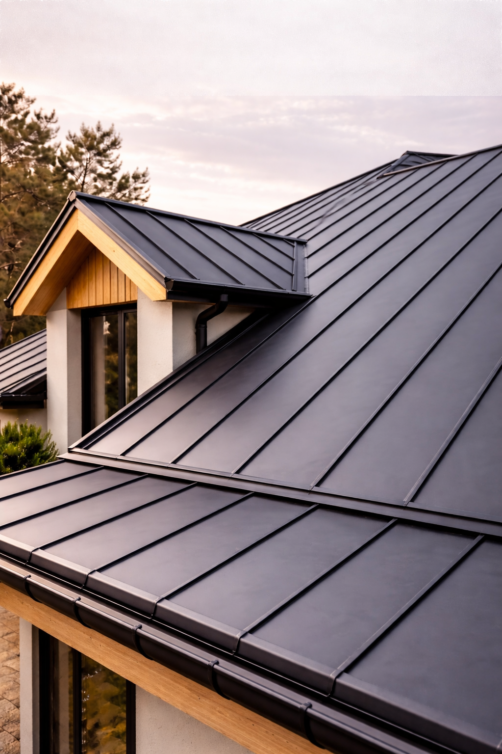 Фальцевая кровля — это выбор тех, кто ценит минимализм, стиль и безупречные формы. Медь, титан-цинк, сталь с полимерным покрытием — материал подчёркивает индивидуальность вашего проекта.
