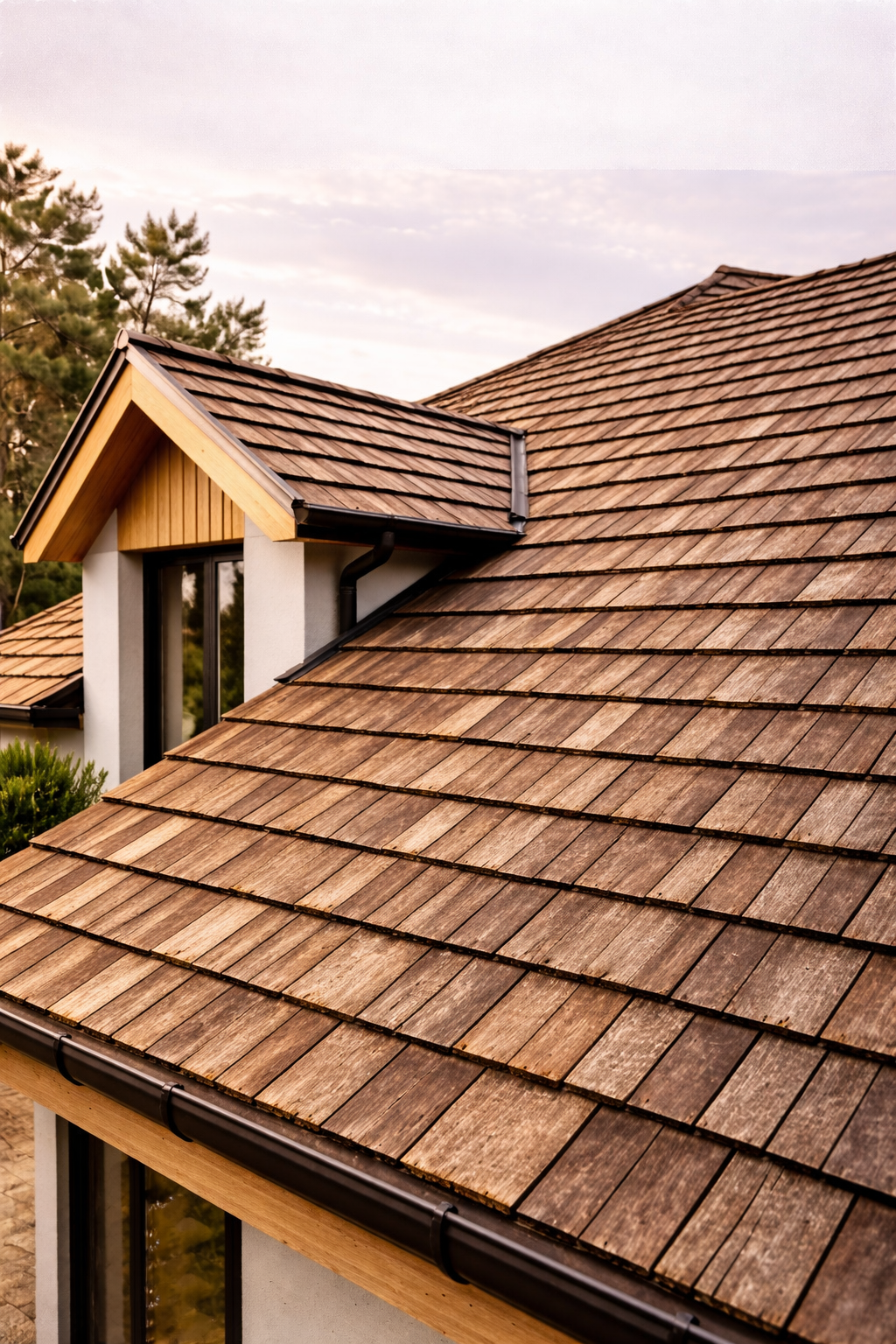 С годами дерево благородно сереет, превращая дом в часть ландшафта. Это не просто крыша — это характер.